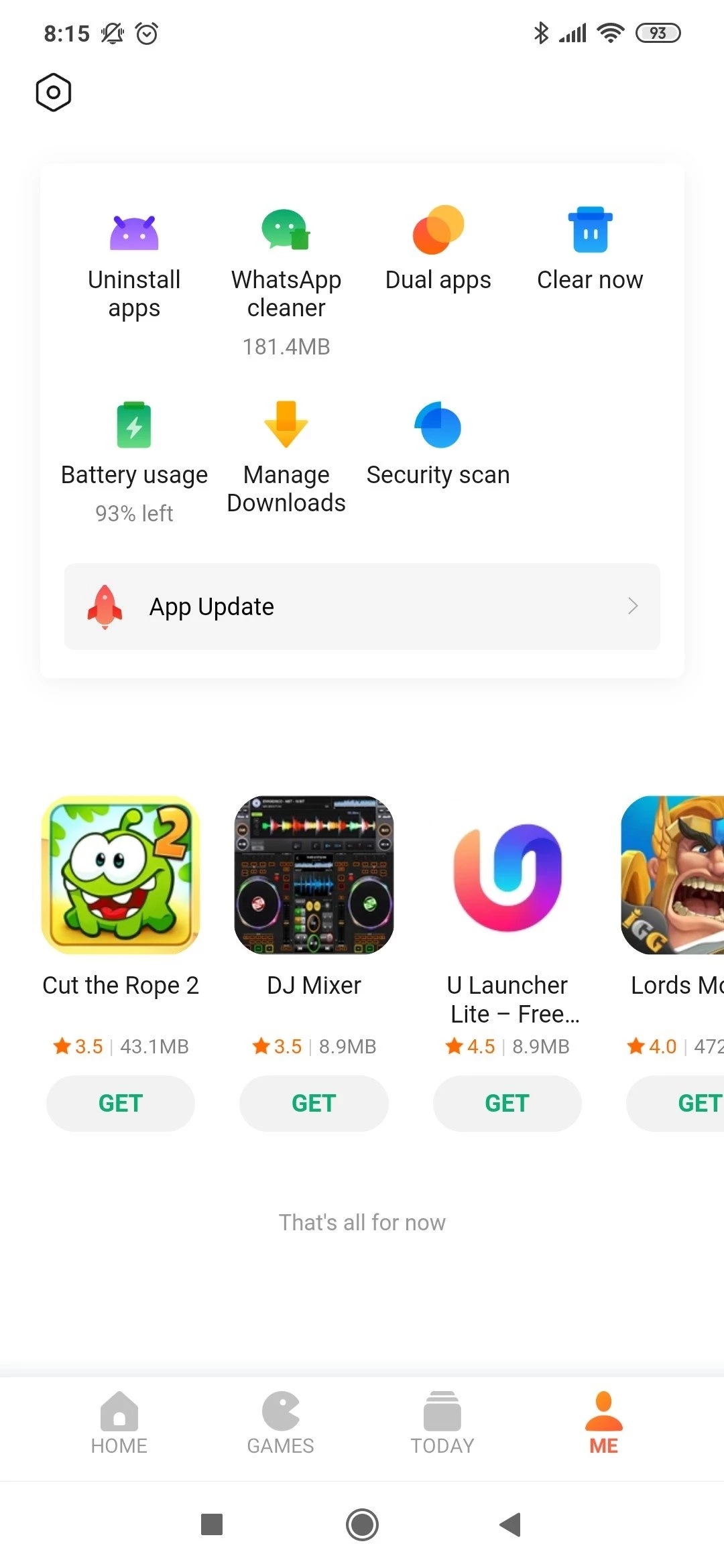 O aplicativo possui diversos recursos adicionais para gerenciar e proteger seu dispositivo. Você encontrará um programa antivírus integrado, uma ferramenta para remover conteúdo indesejado do seu dispositivo. Atualizações regulares dos aplicativos estão disponíveis, o que evita que você precise verificar as atualizações por conta própria.